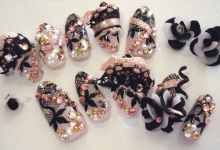 今日のネイルはブライダルのカクテルドレスに合わせて作らせていただいたチップです☆レースも使用してゴージャスに♪
