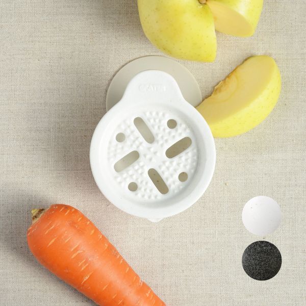 磁器とシリコンの素材でできた、手のひらサイズの機能的なおろし金です。おろしたて、しぼりたてを食卓で手軽に味わえます。