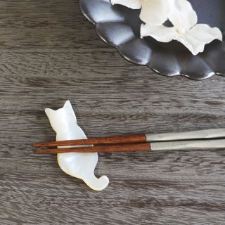 ネコポス対応【Pearl Collection】猫 箸置きS/ねこ/白猫/黒猫/ネコ/キャット/レスト/水牛角/シェル/パール/貝 [SH-R75-J-BH157-J]