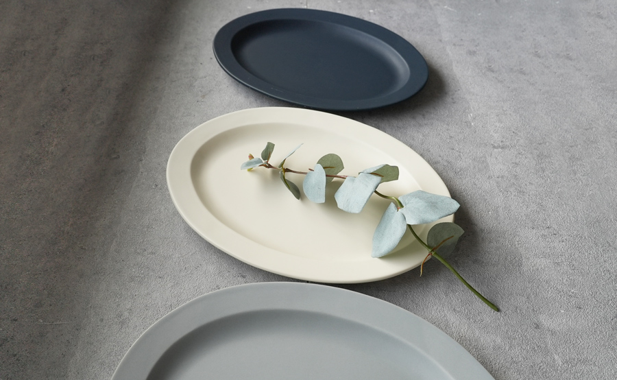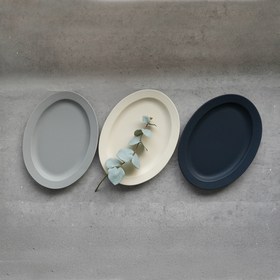 【作山窯-SAKUZAN-】オーバル パスタ皿/グレイ/鉄黒//削ぎ/ソギ/黒土/リムボウル/日本製/陶器 [3930095-3930096]