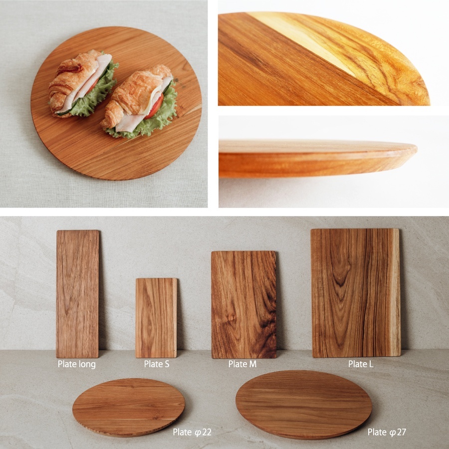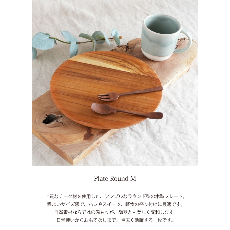上質なチーク材を使用した、シンプルなラウンド型の木製プレート。