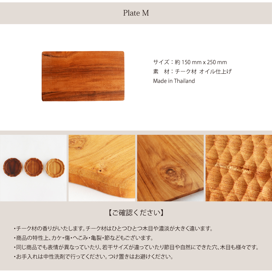 程よいサイズ感で使い勝手のよいチークウッドプレート。