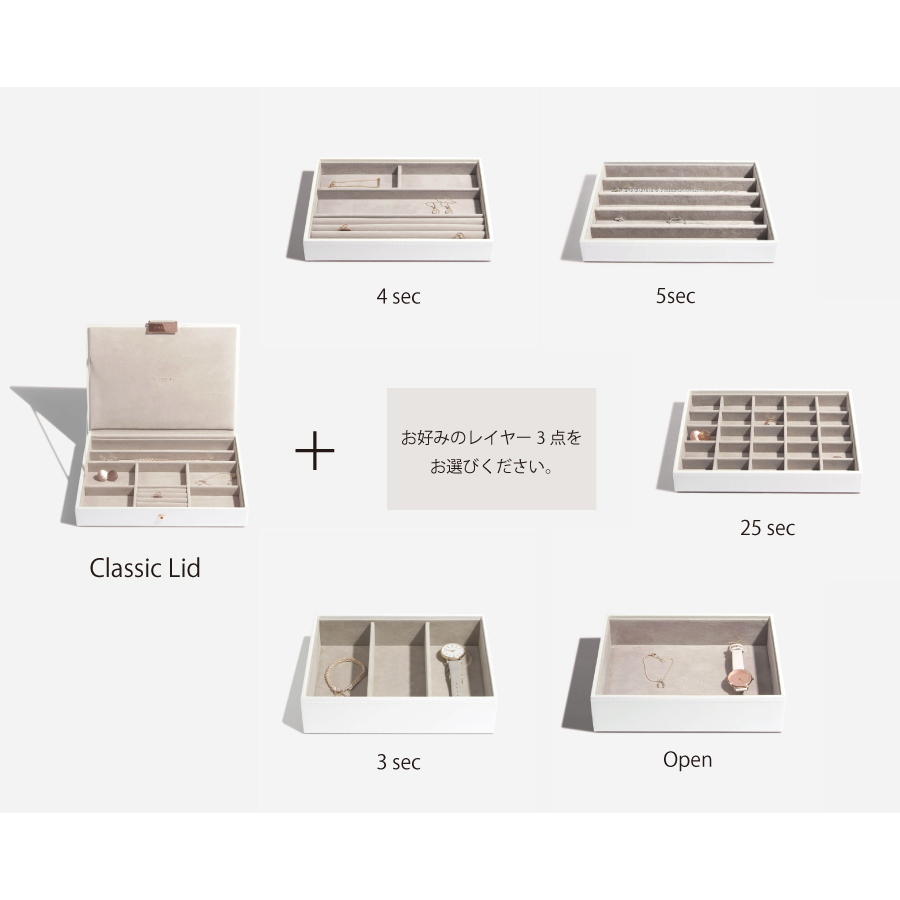 STACKERSのクラシックジュエリーボックス ・ケースと組み合わせて、お使いいただけます。