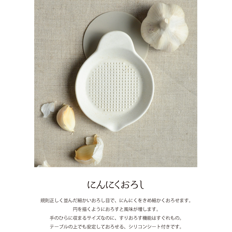 SALIU LOLO 株式会社ロロ 美濃焼 キッチン 調理器具 料理 薬味 すりおろし ニンニク ガーリック 匂いがつかない 清潔 ホワイト 白 かわいい ちいさい 小道具 道具 磁器 器 ツール