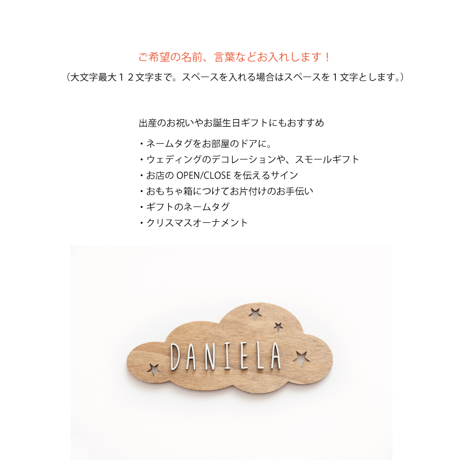 【VINTIUN】ビンティウン 名入れ注文 クラウド ネームプレート ウッドプレート スター 星 カスタマイズ こども部屋 デコレーション ドアサイン サインプレート ウェディング 席札