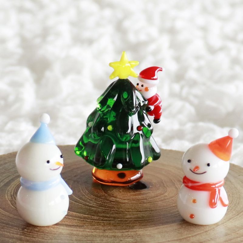 【The Joy Luck Club】シルクハットスノーマン ライトブルー 27mm マフラー 雪だるま ガラス製 オブジェ クリスマス ミニチュア [CA-316-OSB]