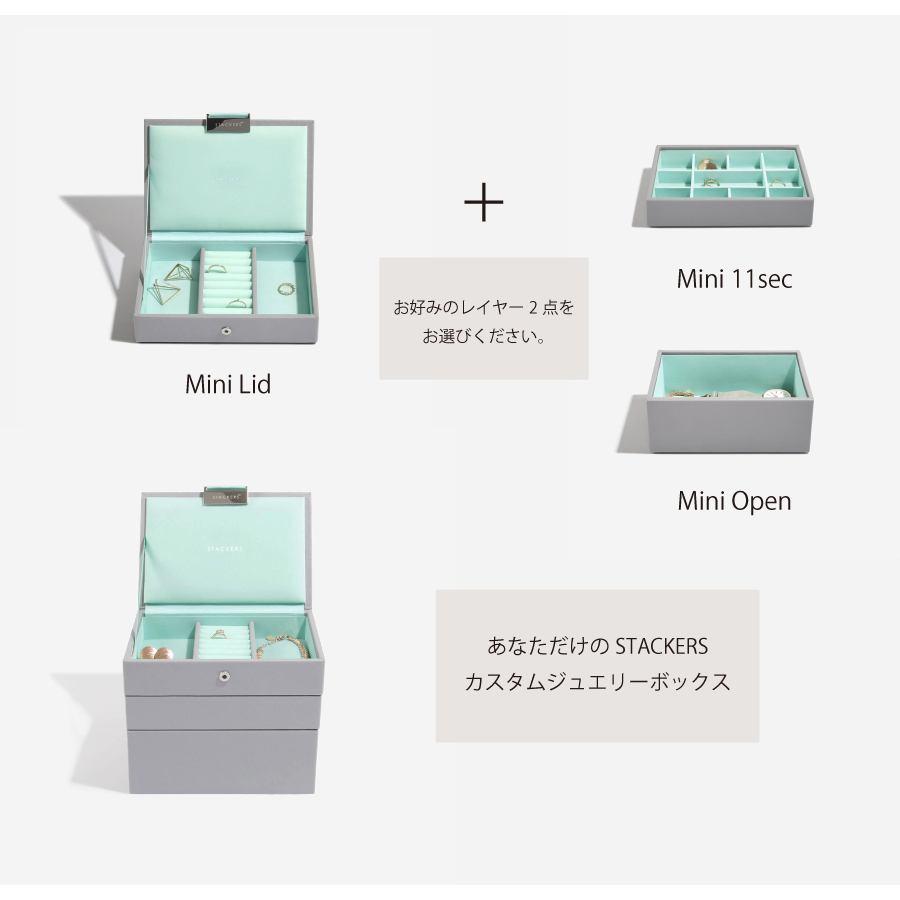 【STACKERS】ミニ ジュエリーボックス オープン Open グレー&ミント Dove Grey & Mint スタッカーズ イギリス ロンドン [73535]