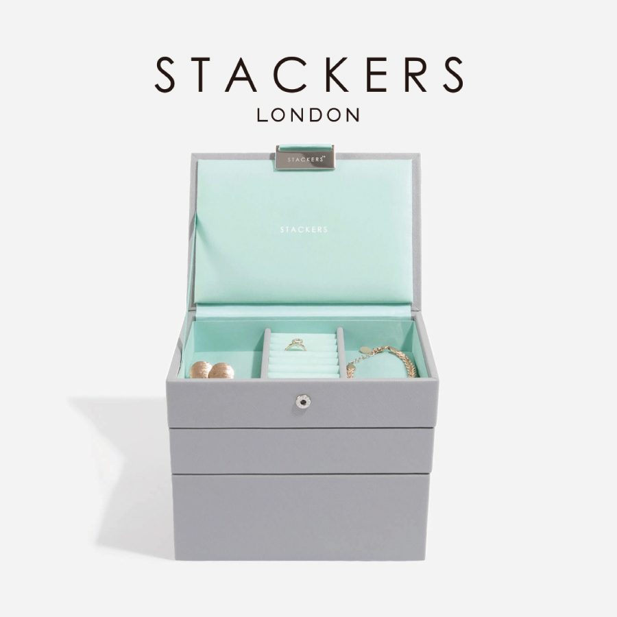 【STACKERS】クラシック ジュエリーボックス Lid リッド (蓋付きケース) グレーミント グレー ミント Mint Grey スタッカーズ ロンドン イギリス [73545]