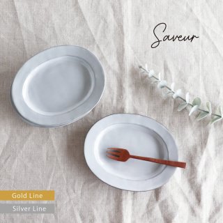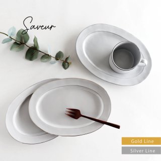 【Saveur】サヴールN オーバルプレート27 ゴールド シルバー ライン 27cm 金巻き サブール [81101N]