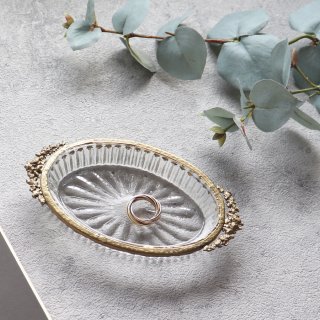 【HM】アンティークローズハンドルトレイ ガラス トレイ 薔薇 アンティーク調 [6672]