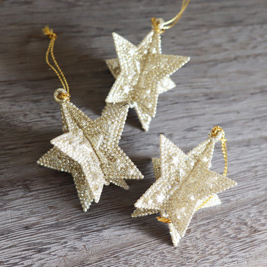 クリスマス デコレーション オーナメント スター 星 ゴールド シルバー グリッター ラメ ハンギングオーナメント 吊るす 飾り