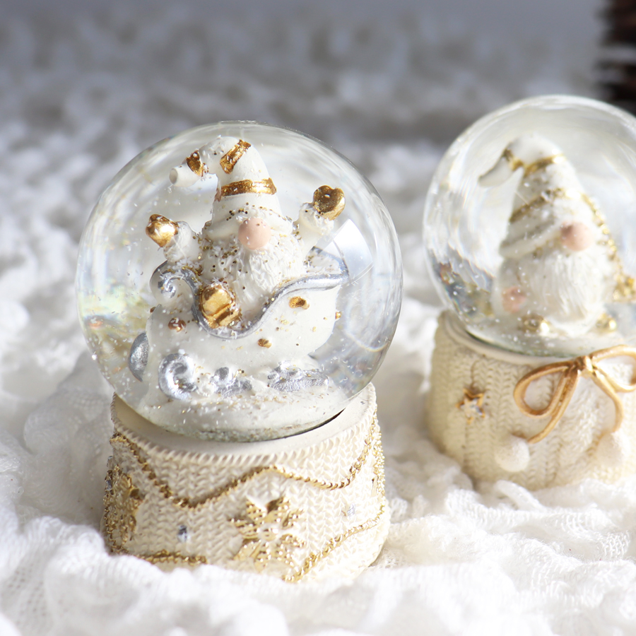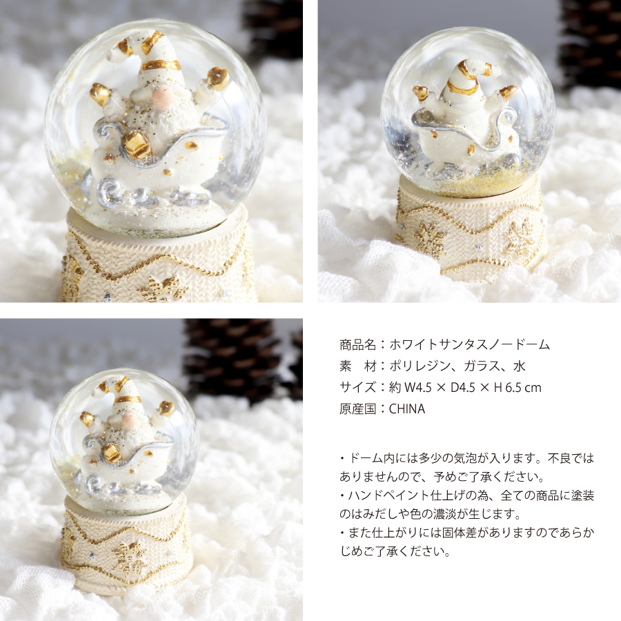 クリスマス デコレーション スノードーム スノーグローブ 白 ニット ホワイト ゴールド サンタ そり 飾り キラキラ クリスマスオブジェ