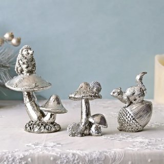 【HM】シルバーフォレスト マッシュルーム ハリネズミ リス ドングリ オブジェ [1096]