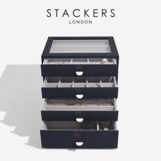 【STACKERS】クラシック ドロワージュエリーボックス 選べる4個セット ネイビーペブル Navy Pebble 引き出し ガラス スタッカーズ ロンドン イギリス [DR4set-NAVY]