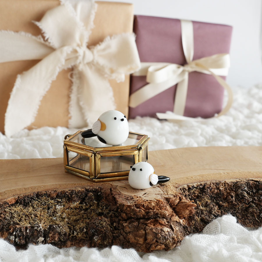 【The Joy Luck Club】シマエナガ 鳥 S・M ガラス製 オブジェ クリスマス ミニチュア [CA-074]