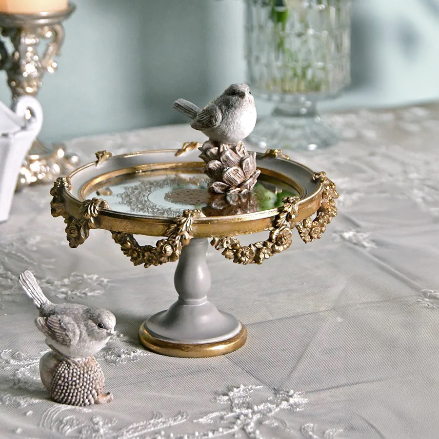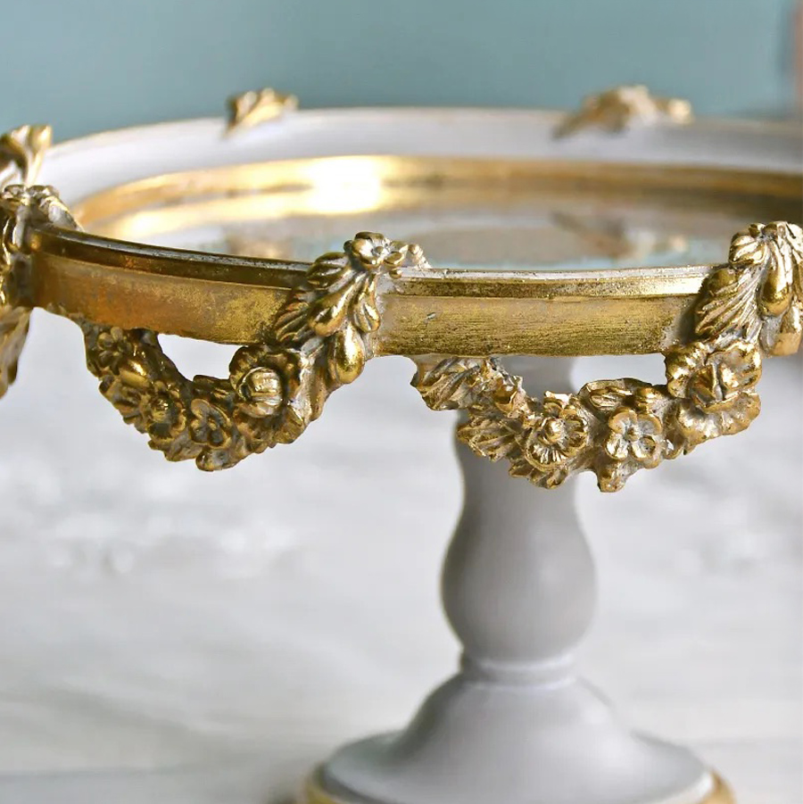 【HM】フラワーガーランド ミラートレイ スタンド グレイ φ19.5cm×H12cm アンティーク調 [011309]
