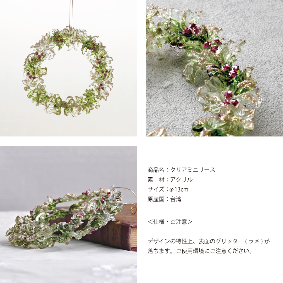 【 HM 】クリアミニリース アクリル グリーン φ13cm クリスマスリース [011336]