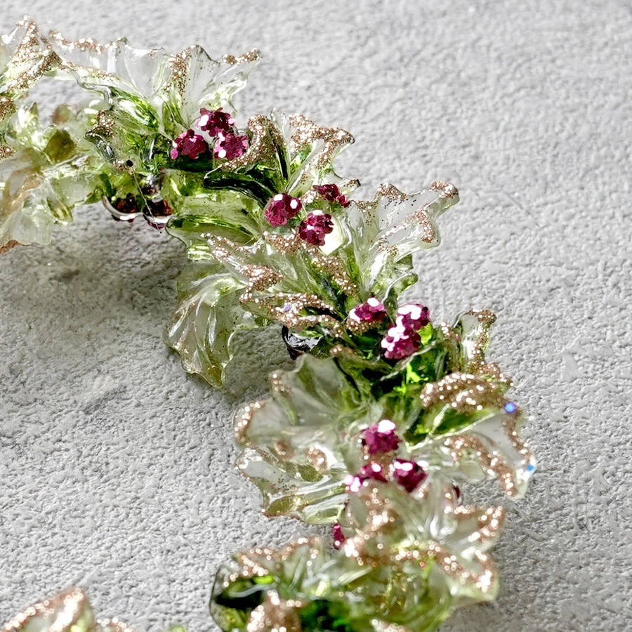 クリアグリーンのヒイラギにピンクの実のアクセントをつけた,