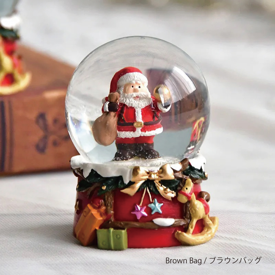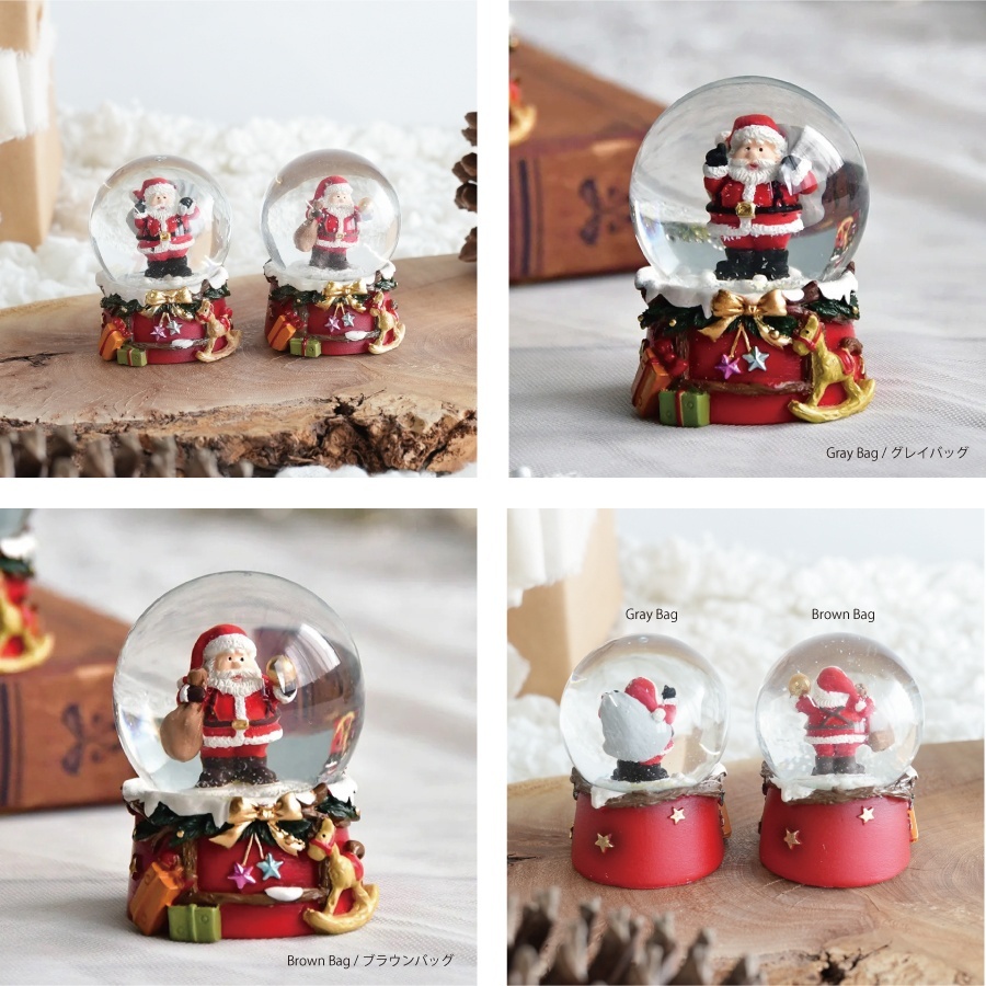 【 HM 】サンタウィズバッグ ミニスノードーム グレーバッグ ブラウンバッグ H6cm [011163]