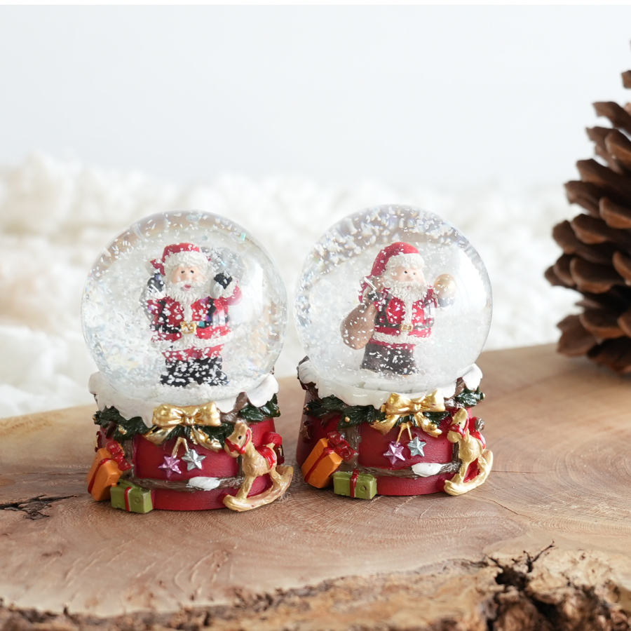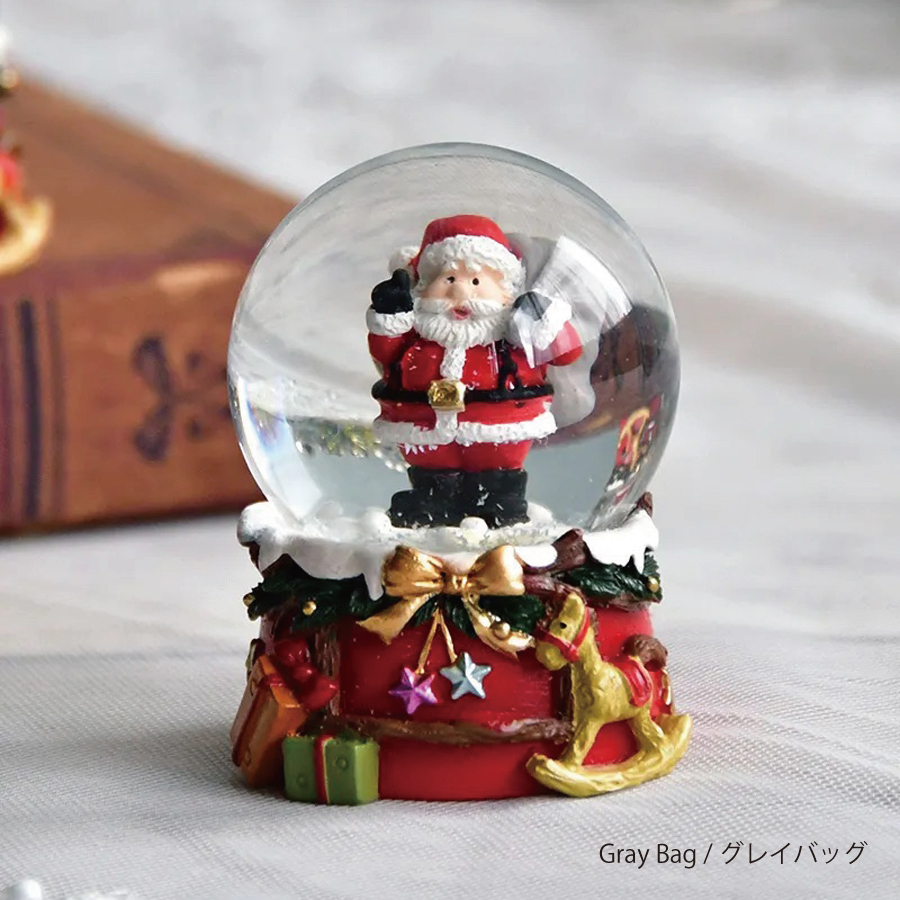 プレゼントバッグを持ったサンタクロースが入ったミニスノードームオブジェ。