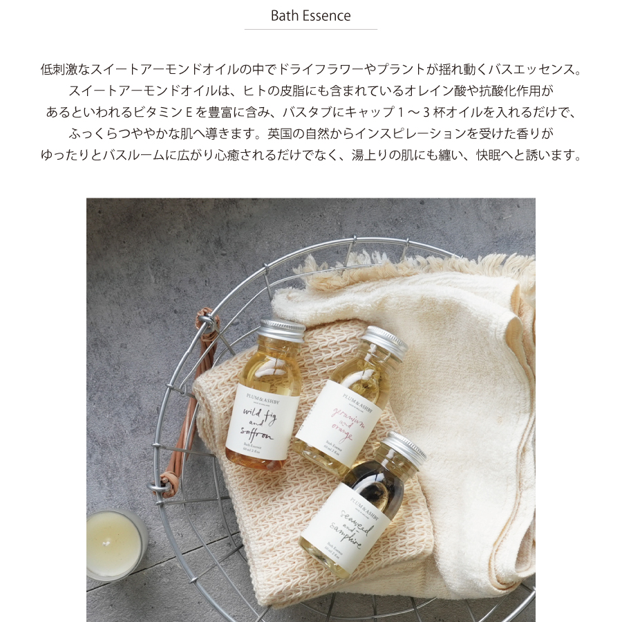 【PLUM&ASHBY】プラム&アシュビー ミニ バスエッセンス 60ml イギリス製 ゼラニウム&オレンジ シーウィード&サンファイア ワイルドフィグ&サフラン [794]