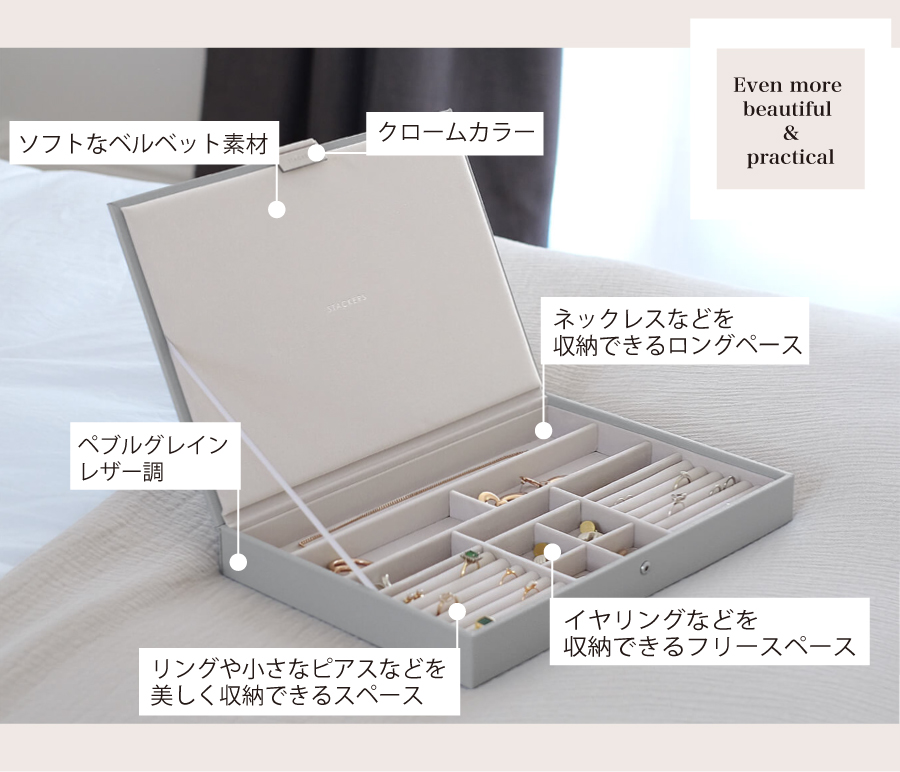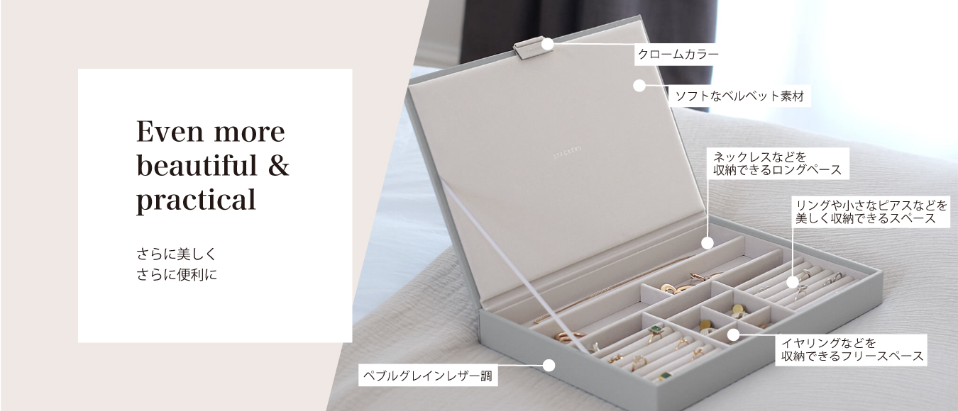 大切なジュエリーを見やすく、そして美しく収納してくれます。