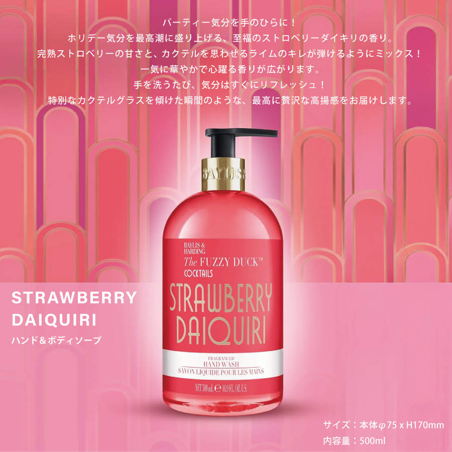 【BAYLIS&HARDING】Strawberry Daiquiri ハンド&ボディウォッシュ ストロベリーダイキリ Hand & Body Wash 500ml イギリス製 ハンド ボディーソープ 数量限定 [BH-4708]