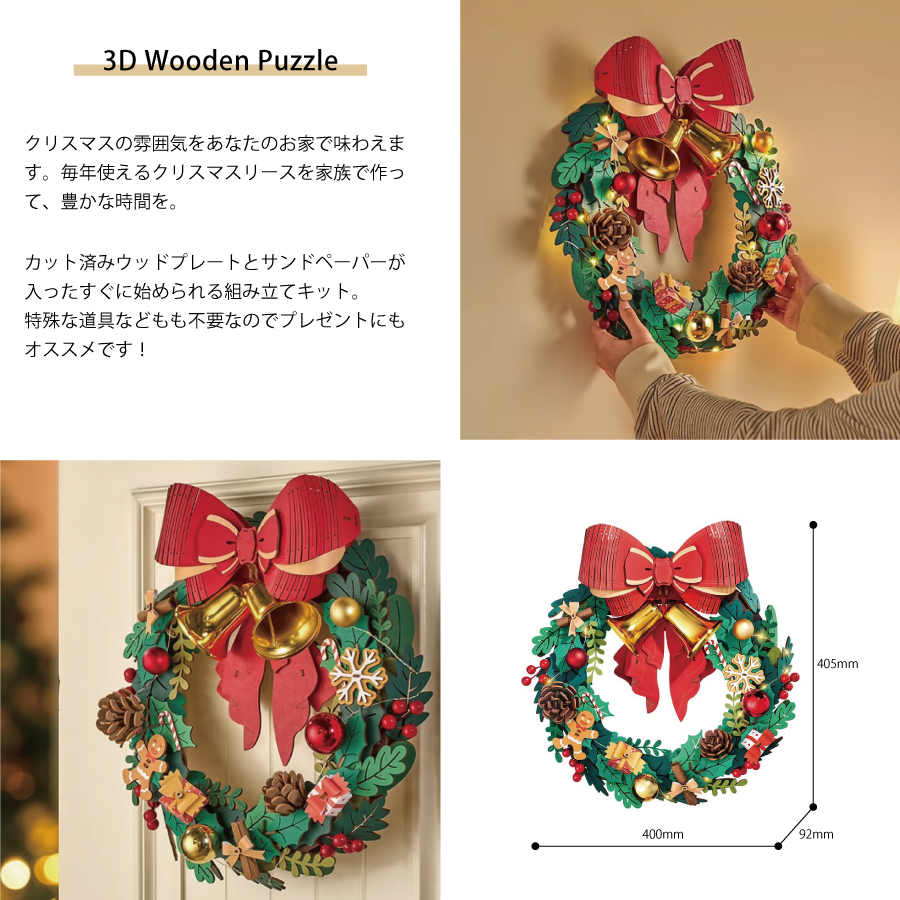 【Rolife】クリスマスリース Christmas Wreath DIY ミニチュア 木製パズル クリスマス TGL04 [TGL04]