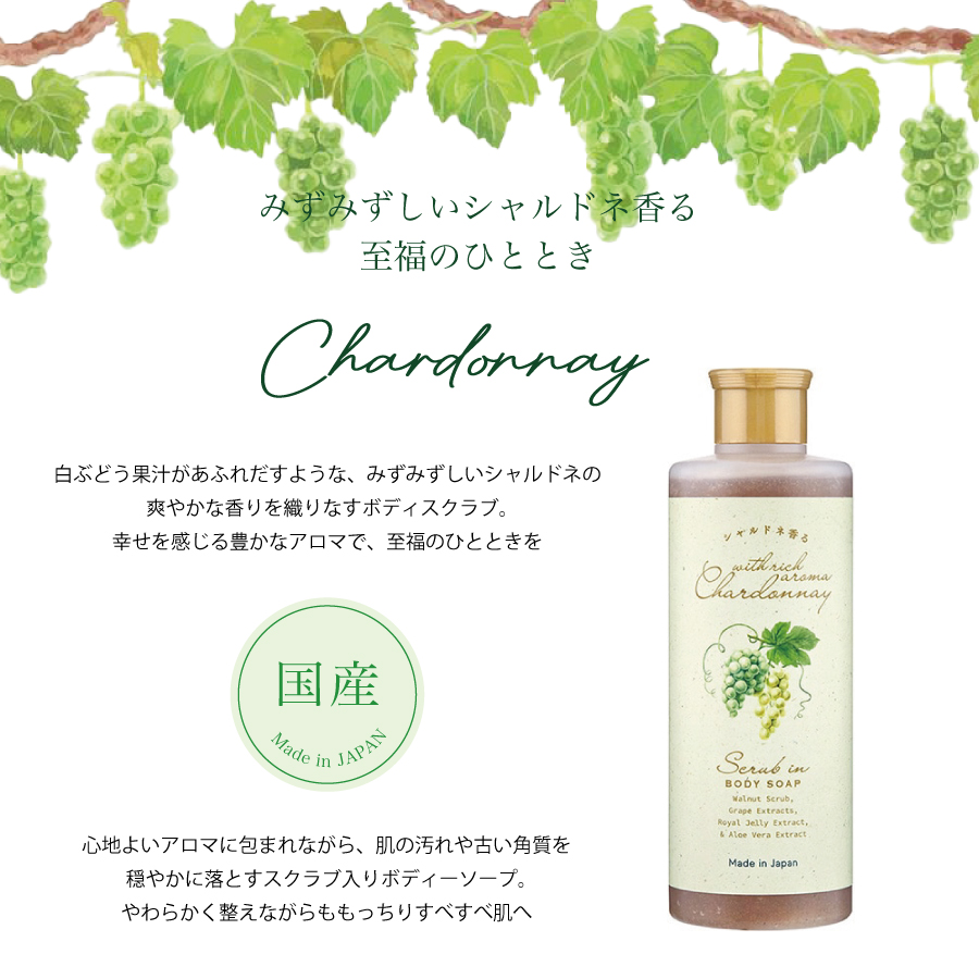 【Chardonnay】シャルドネ ボディスクラブ 290ml クルミ殻スクラブ 角質ケア ぶどうエキス 国産 [226-27]