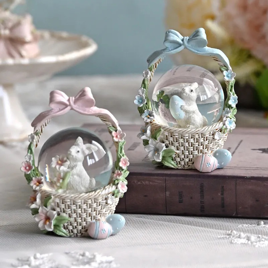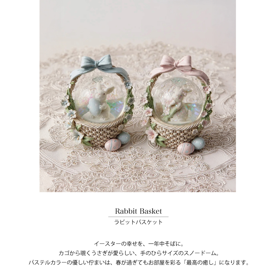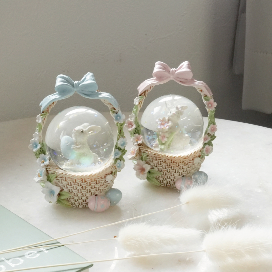 【 HM 】ラビットバスケット ミニスノードーム H9cm リボンバスケット ウサギ (ピンク・ブルー) [HM-011496]