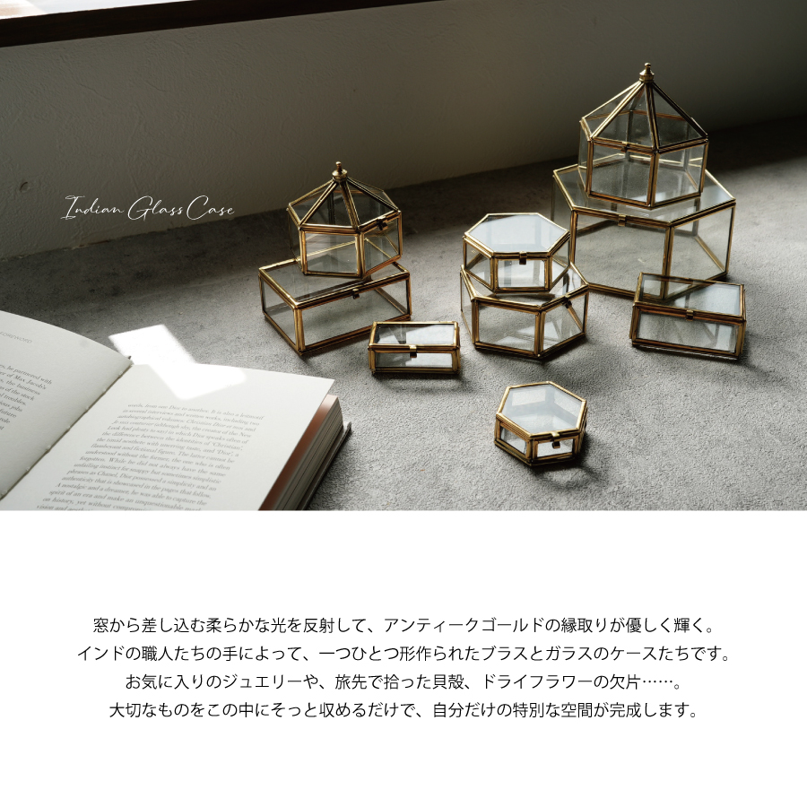 【MALAIKA】サーカステント ガラスケース インテリアに 小物入れ (S・M) インド製 アンティーク調 [BOX0080]