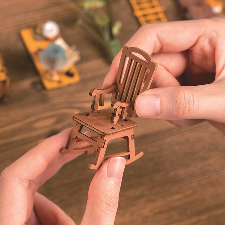 ウッドパズルとミニチュアハウスの二つの要素を兼ね備え、完成後はブックエンドとして、本棚を美しく飾ってくれます。 -