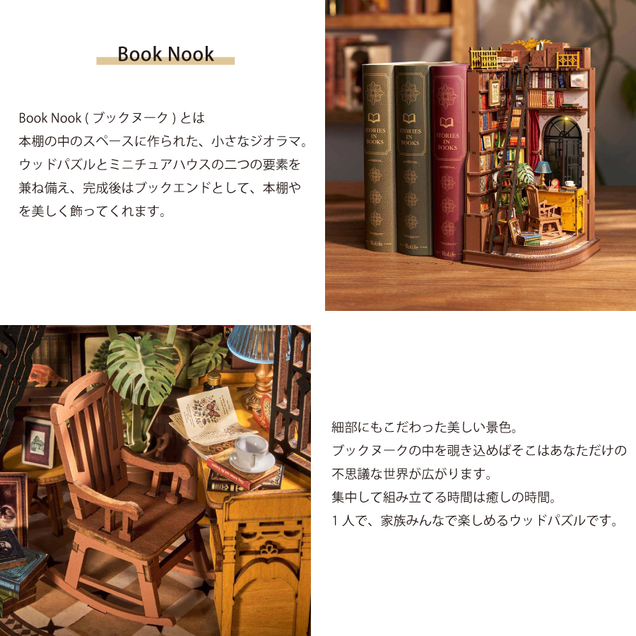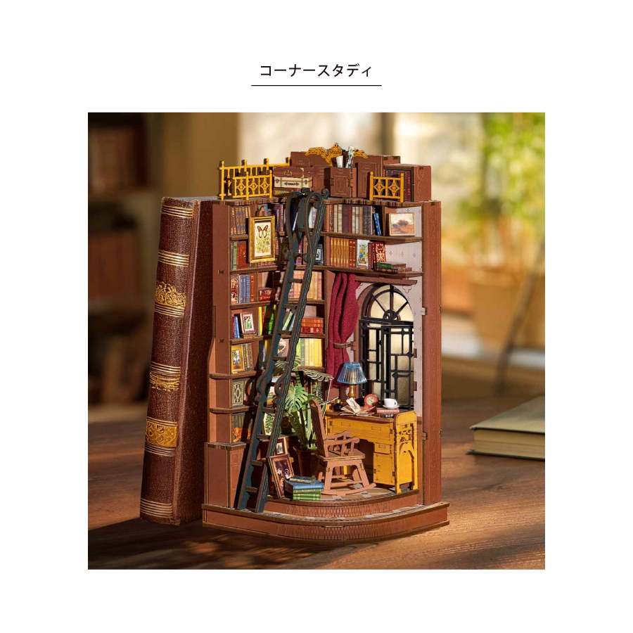 【Rolife】 コーナースタディ Silent Corner Study Book Nook ブックヌーク 英語版説明書 ウッドパズル ミニチュア ブックエンド DIY [TGE02]