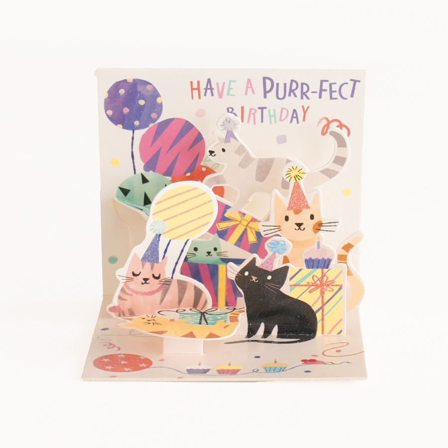 ネコポス対応【UP WITH PAPER】 3D Party Cat バースデーカード お誕生日カード ポップアップカード 立体カード ギフト 7.5x7.5x7.5cm [CRD-UP-TR305mini]