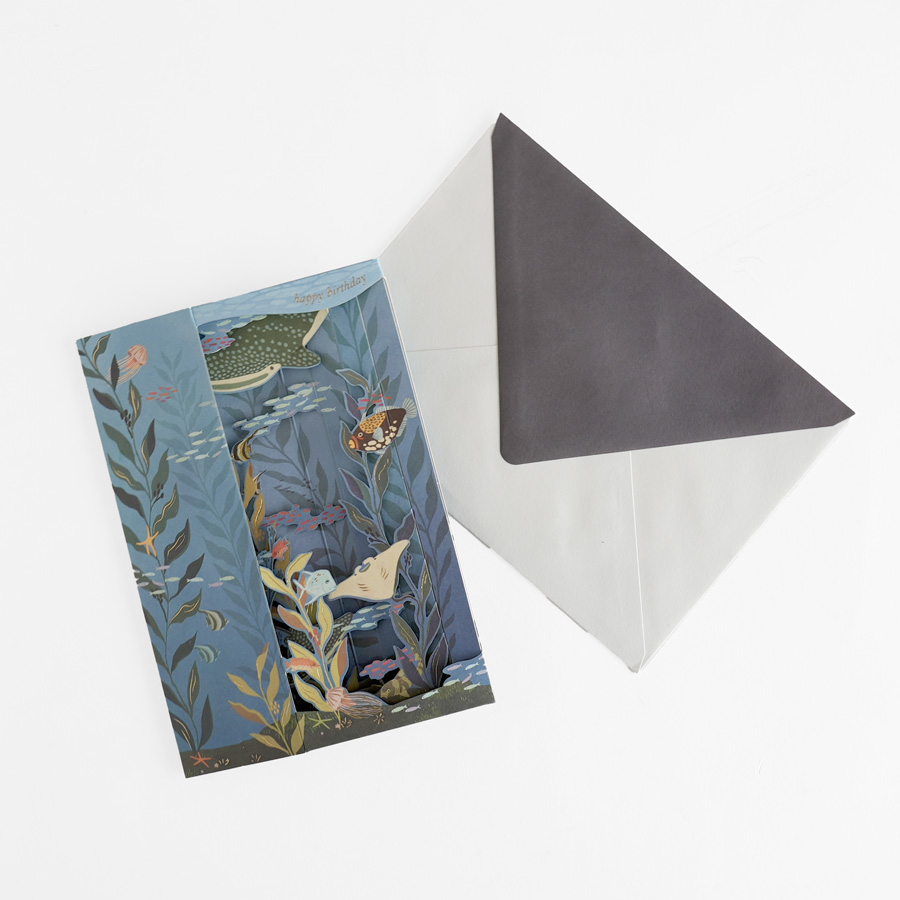 ネコポス対応【UP WITH PAPER】 3D Deep Sea ディープシー バースデーカード お誕生日カード ポップアップカード 立体カード ギフト 約 7.62 cm × 17.78 cm × 5.08 cm Design in USA [CRD-UP-AL119]