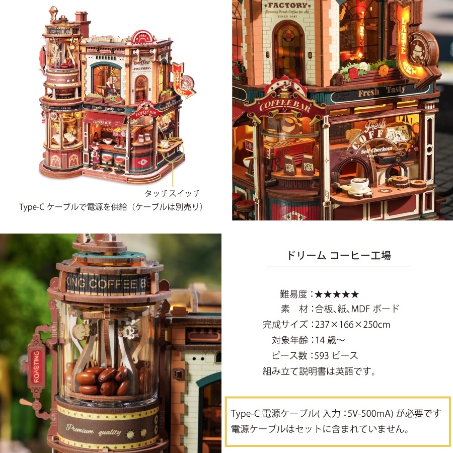 【Rolife】 ドリームコーヒー工場 Dream Coffee Factory 英語版説明書 ウッドパズル ミニチュア DIY [EAB02]