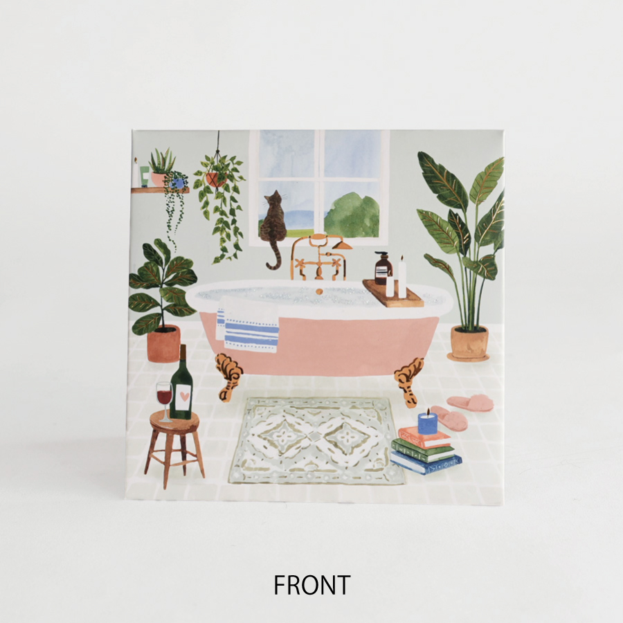 ネコポス対応【UP WITH PAPER】BATHTUB リラックスタイム (バスタイム・猫・キャンドル・ワイン・読書)カード ポップアップカード ギフト 13.5cm X 13.5cm Design in USA [CRD-UP-TR0542]
