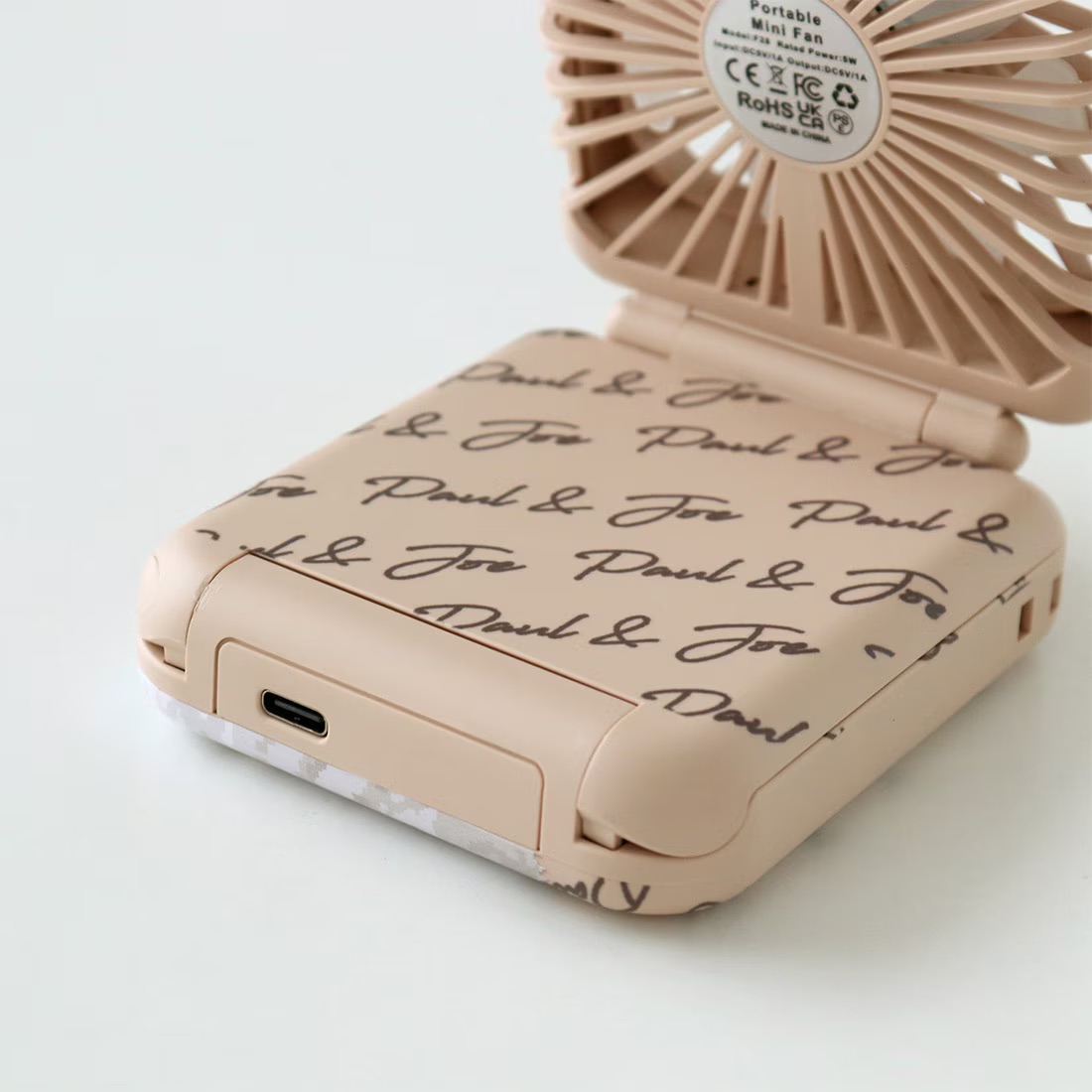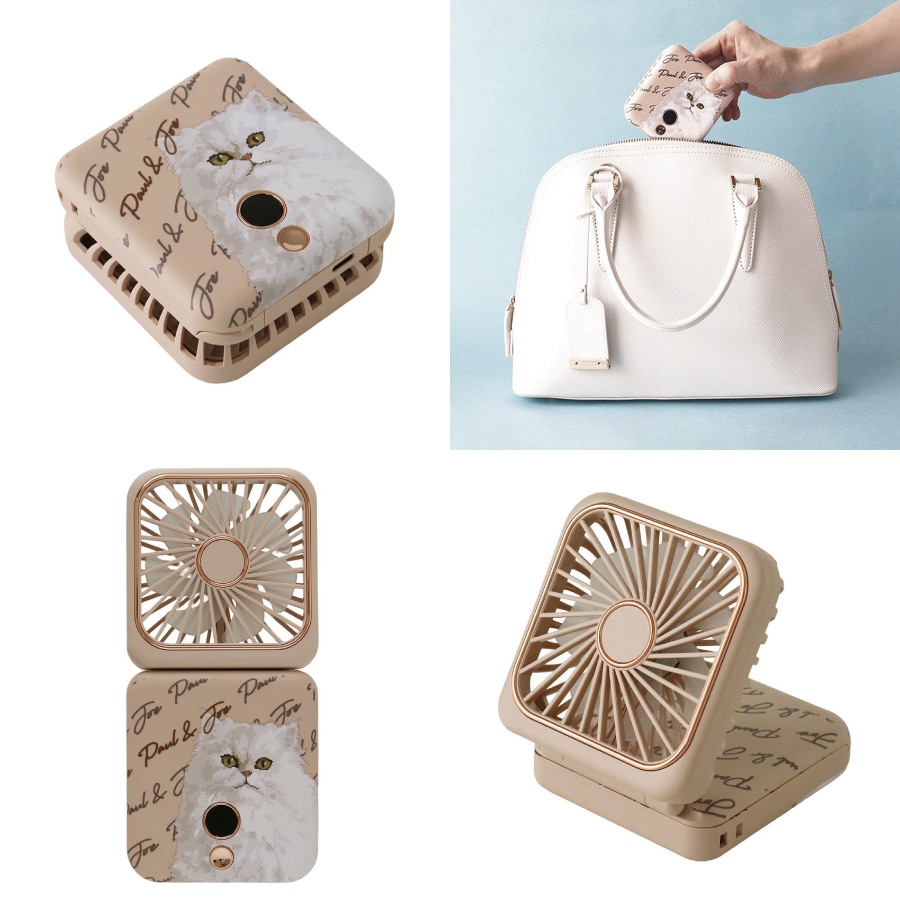 【PAUL&JOE】ポール&ジョー 充電式 モバイルハンディファン ミニ扇風機 猫 (スマホスタンド/ミラー付き/ 5段階風量切替) 充電用USBケーブル付き [WD-F28-PJ]